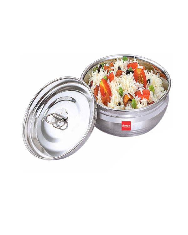This dinner set is made from food grade quality stainless steel which makes it a brilliant product and an ultimate combo. The quality from which the dinner set is made is a premium quality stainless steel that makes it a way healthier life than the regular melamine products. This makes sure that there is no food contamination and the food can be stored in the same containers and can be used to serve as well. Moreover, this kitchen combo set is very size efficient, will fit in your kitchen effortlessly and will save you a lot of space. This combo is a complete value for money as this serving and storage set is a great add on to your kitchen. The high quality stainless steel make the dinner set strong and makes it the best option for meal times at home. You can also give this set to your loved ones as a perfect gifting option on wedding or special occasions.